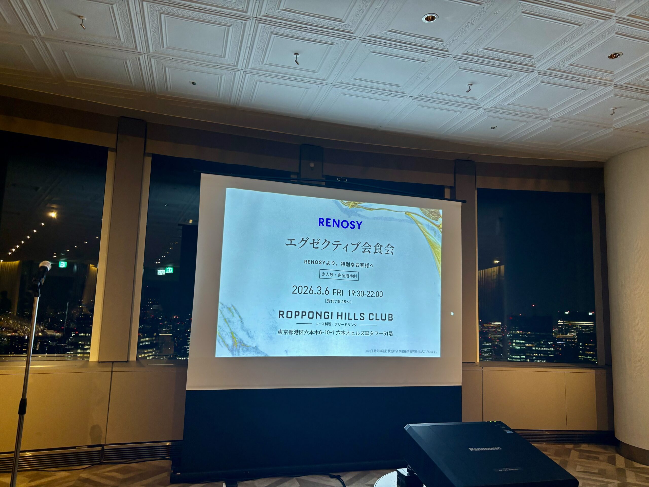 Leading Startup Square(LSS)のスポンサー企業である株式会社GA technologies様(東証グロース)より、3月6日に六本木ヒルズ森タワー51階の会員制クラブ「六本木ヒルズクラブ」にて開催された【第1回 RENOSYエグゼクティブ会食会】にご招待いただき、参加して参りました。